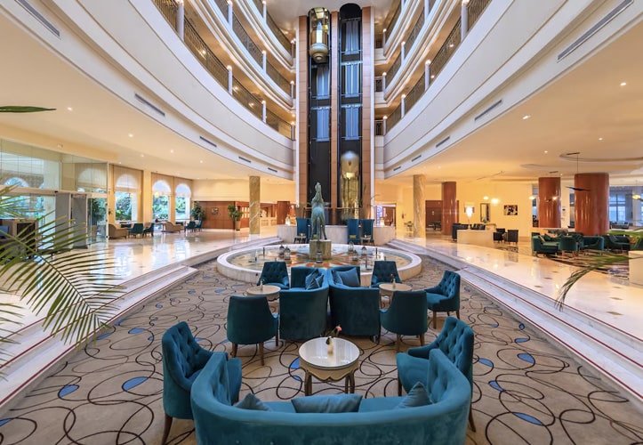 Situé en bord de mer à Hammamet, l’Hôtel Steigenberger Marhaba Thalasso est une adresse haut de gamme offrant un cadre élégant et raffiné, idéal pour une clientèle en quête de détente et de bien-être.